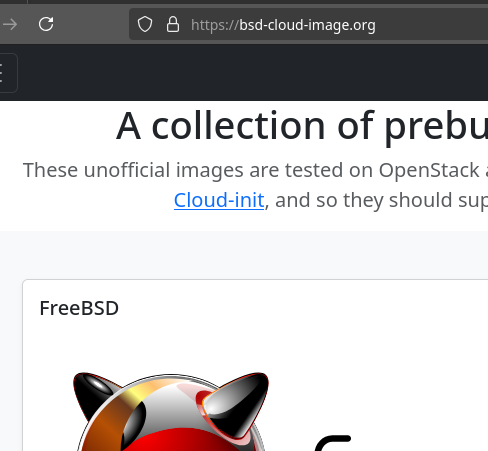 bsd-cloud-image.org aims to simplify the use of BSD operating systems in a cloud environment. It provides a series of cloud-ready images that can quickly be deployed and tested. The original target was OpenStack and Virt-Lightning. But the images should work with any Cloud-Init compatible environment.
